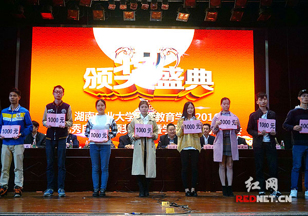 红网长沙10月26日讯(时刻新闻记者 刘怡斌 通讯员 裴昌胜)10月26日下午,湖南农业大学举行优秀自考生颁奖典礼暨学风建设动员大会,64名学生和16个班级、寝室获得30万元奖励,1200多名师生参加颁奖仪式。