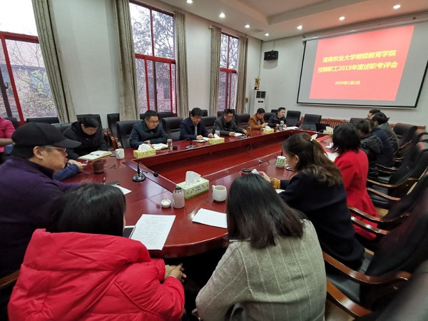1月2日上午,继续教育学院2019年度校聘教职工述职评议考核大会在5教205会议室召开。院学院职工年度考核工作领导小组成员和全体校聘教职工参加评议会。