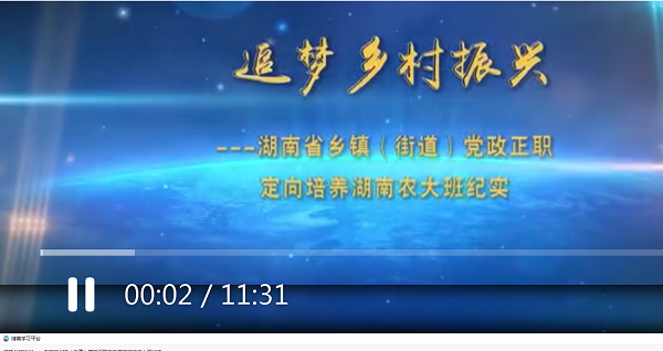 11月,我校承办的湖南省乡镇(街道)党政正职定向培养专题培训班录制的《追梦乡村振兴——湖南省乡镇(街道)党政正职定向培养专题培训班纪实》视频入选国家级大型综合融媒体“学习强国”,开创了我校宣传资料登录“学习强国”先例。湖南省乡镇(街道)党政正职定向培养专题培训农林经济管理班是经省委批准,按照省委组织部和省教育厅统一部署开办。省委杜家毫书记高度重视这期培训班培训。我校高度重视,校领导亲自统筹谋划和参与,高质量完成有关工作。培训班工作得到省委组织部和学员们的充分肯定。