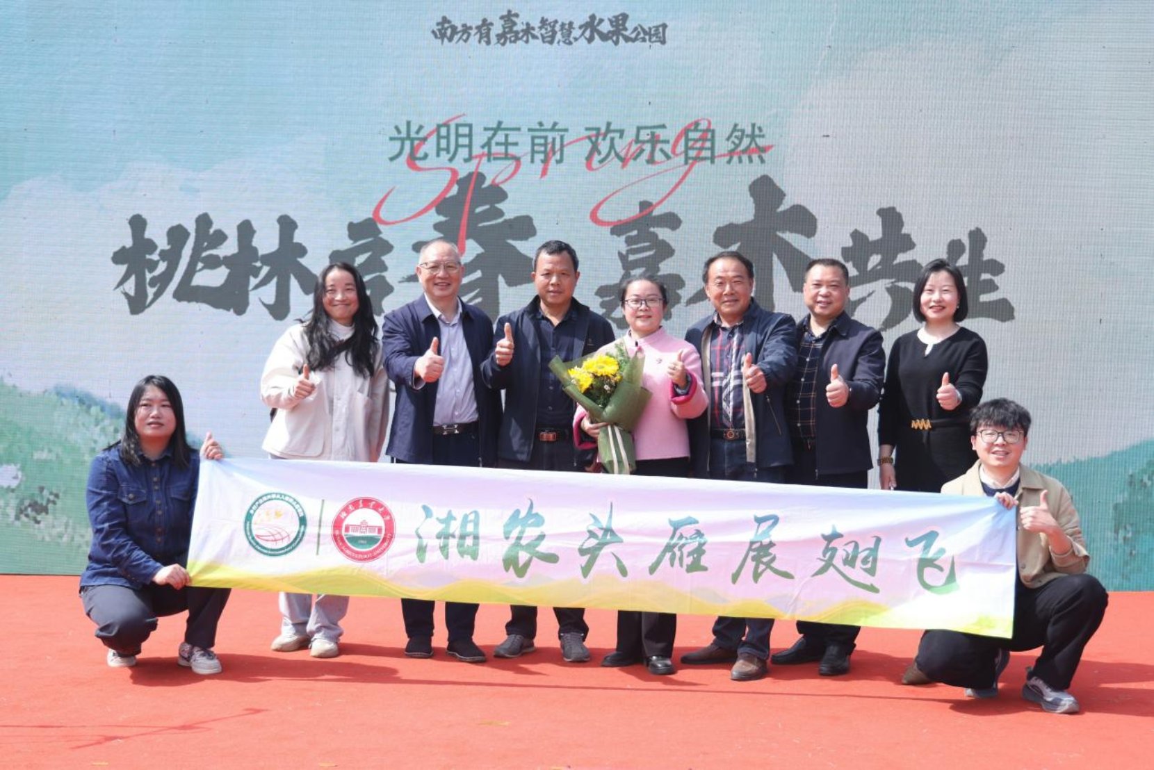 (培训办 朱创)三月春光好,桃花灼灼开。3月13日,在湖南长沙湘江新区白箬铺镇光明村,一场以“桃林启春·嘉木共生”为主题的春季桃花节拉开帷幕。这不仅是一场春日花事的盛宴,更是湖南农业大学在“头雁”项目培育中交出的又一份亮眼答卷——由该校2024级“头雁”学员邓湘君打造的“南方有嘉木智慧水果公园”于此日正式启幕,实现了从课堂理论到田间实践的跨越。